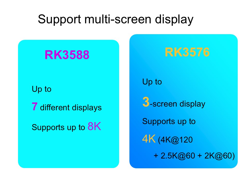 Zarówno RK3588, jak i RK3576 obsługują wiele ekranów i różne wspólne interfejsy wyświetlacza.
